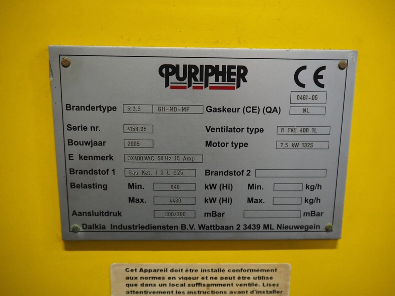 K. Hagoort & Zonen B.V. steam boiler, serial number: 169363, year of construction: 1982, Puripher burner, type: R 3.5, year of construction: 2005, dimensions: 8850 mm x 3300 mm x 4600 mm.