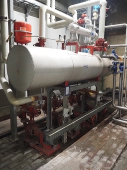 Grenco hot water tank with 4 KSB centrifugal pumps, type: (4x) ETANORM, total dimensions: 3500 mm x 1200 mm x 2800 mm.1 bidLot is closed