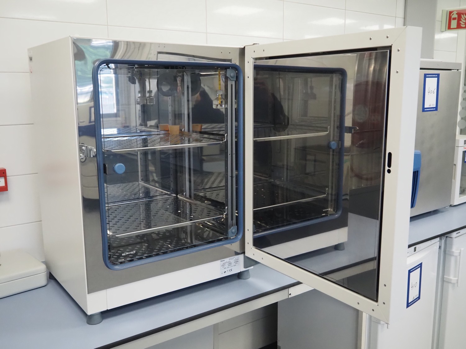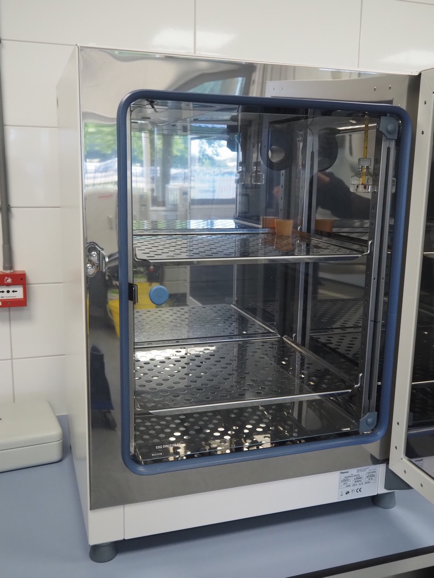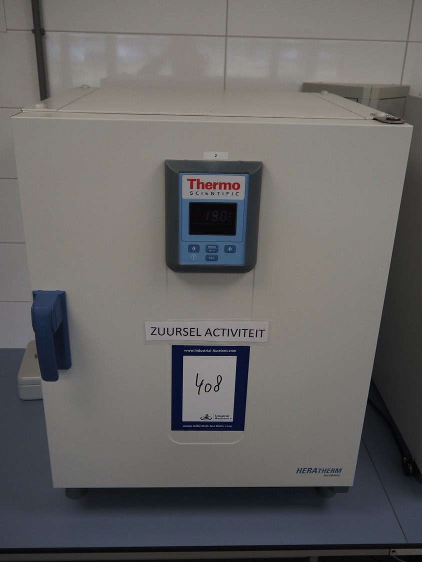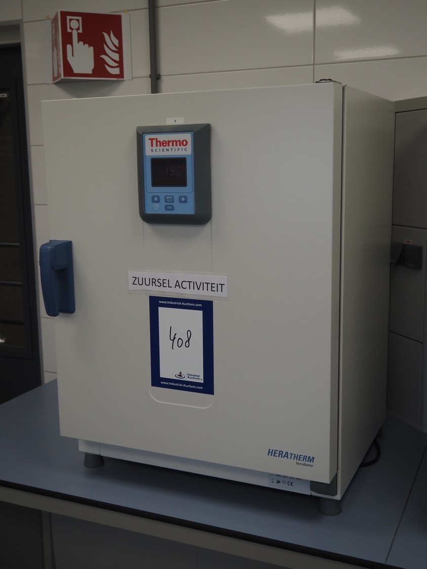 Thermo Scientific incubator, type: HERATHERM IGS100, serial number: 41505661, year of construction: 2013, 230 V, 1 Ph, 50/60 Hz, 2.3 A, maximum temperature: 75 °C, dimensions: 650 mm x 640 mm x 830 mm.