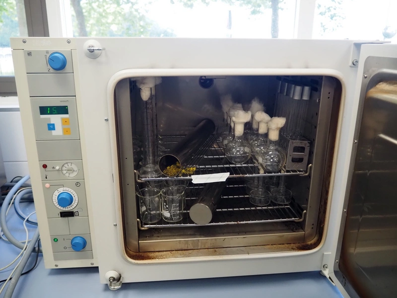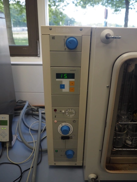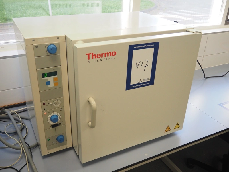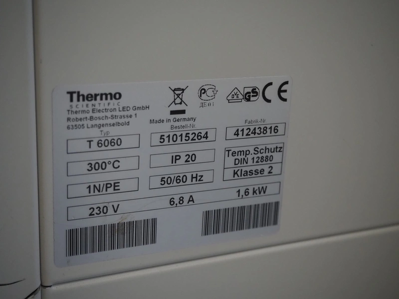 Thermo Scientific vacuum heating and drying oven, type: T 6060, fabrication number: 412433816, 230 V, 1 Ph, 50/60 Hz, 6.8 A, 1.6 kW, maximum temperature: 300 °C, dimensions: 600 mm x 750 mm x 580 mm.