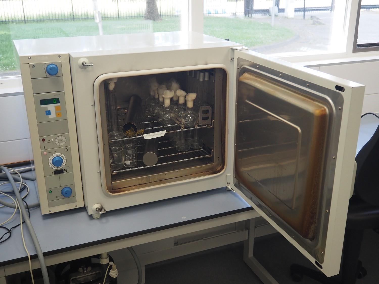 Thermo Scientific vacuum heating and drying oven, type: T 6060, fabrication number: 412433816, 230 V, 1 Ph, 50/60 Hz, 6.8 A, 1.6 kW, maximum temperature: 300 °C, dimensions: 600 mm x 750 mm x 580 mm.