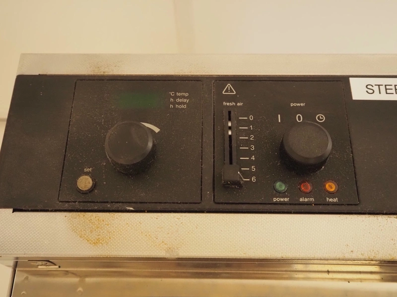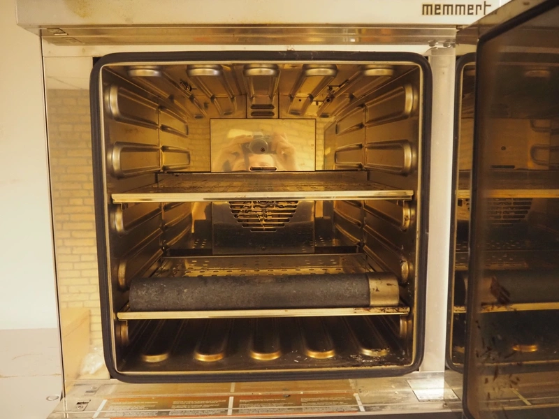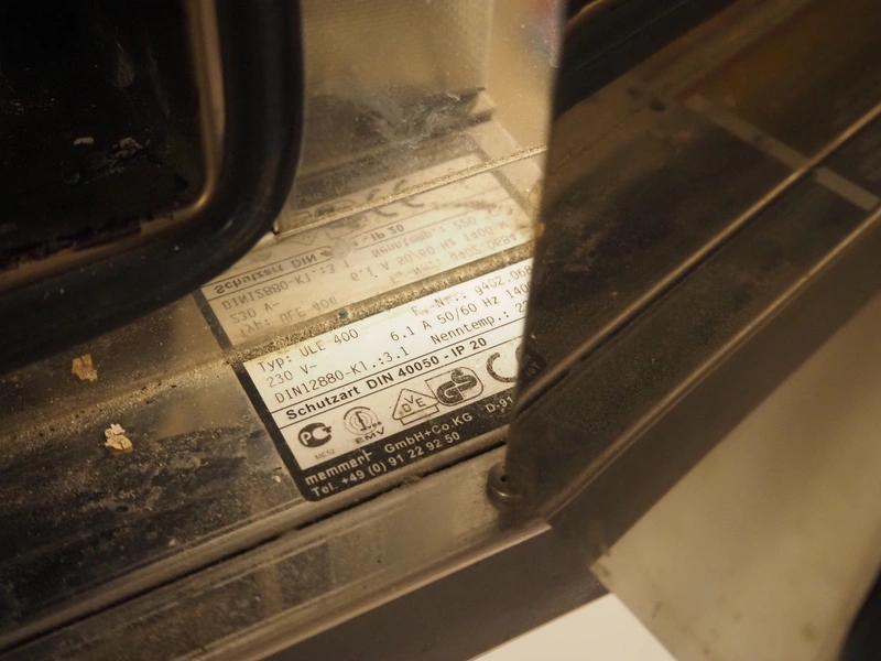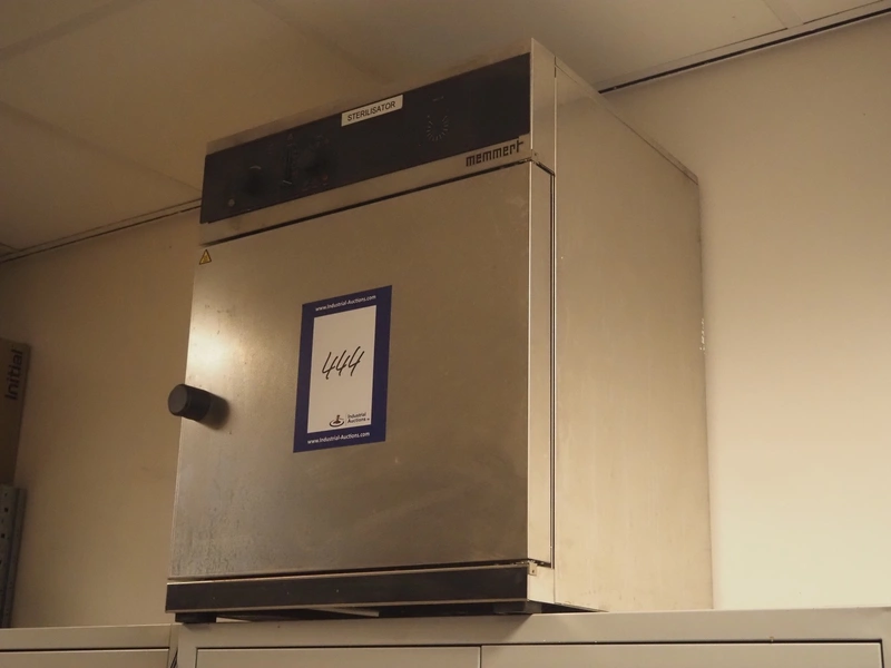Memmert heating and drying oven, type: ULE 400, 230 V, 50/60 Hz, 6.1 A, dimensions: 550 mm x 550 mm x 670 mm.