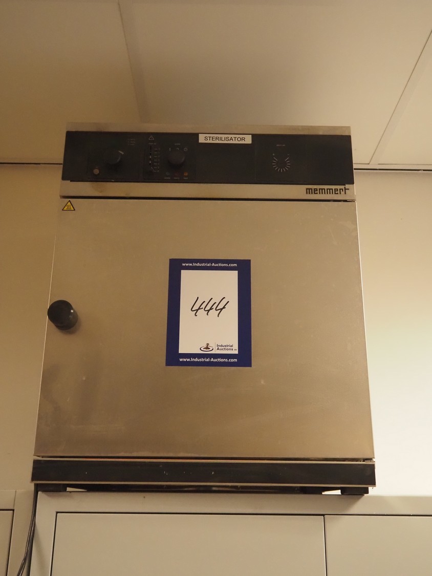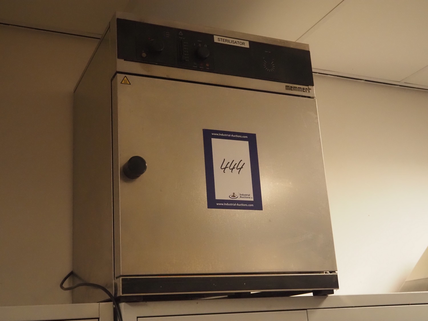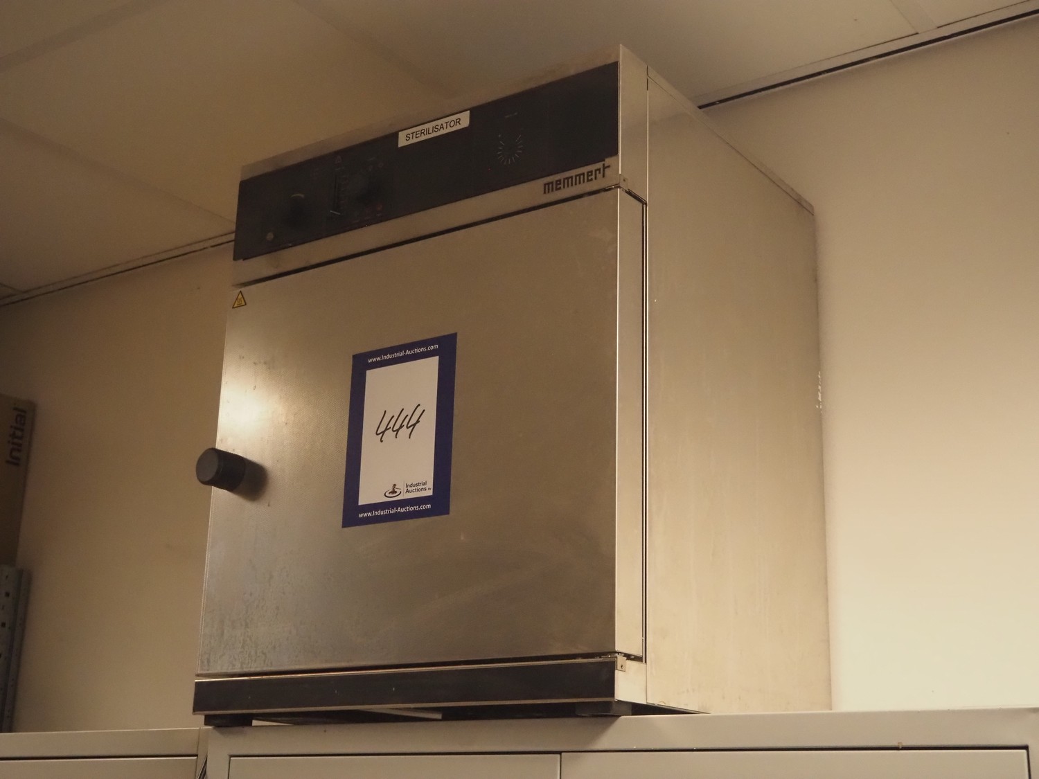 Memmert heating and drying oven, type: ULE 400, 230 V, 50/60 Hz, 6.1 A, dimensions: 550 mm x 550 mm x 670 mm.