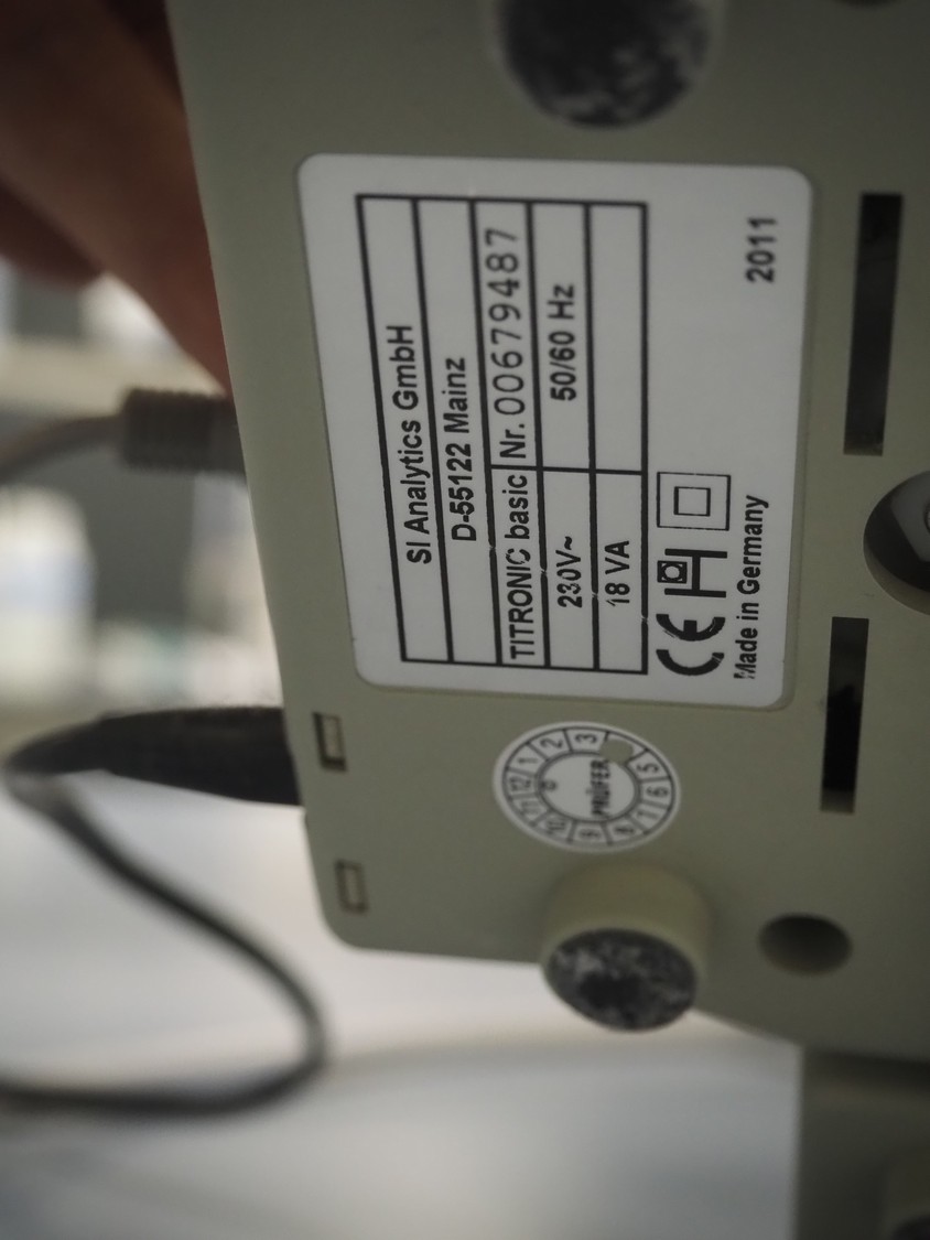 SI Analytics GmbH titrator, type: TITRONIC basic, number: 00679487, year of construction: 2011, 230 V, 50/60 Hz, 18 VA, dimensions: 200 mm x 130 mm x 300 mm.