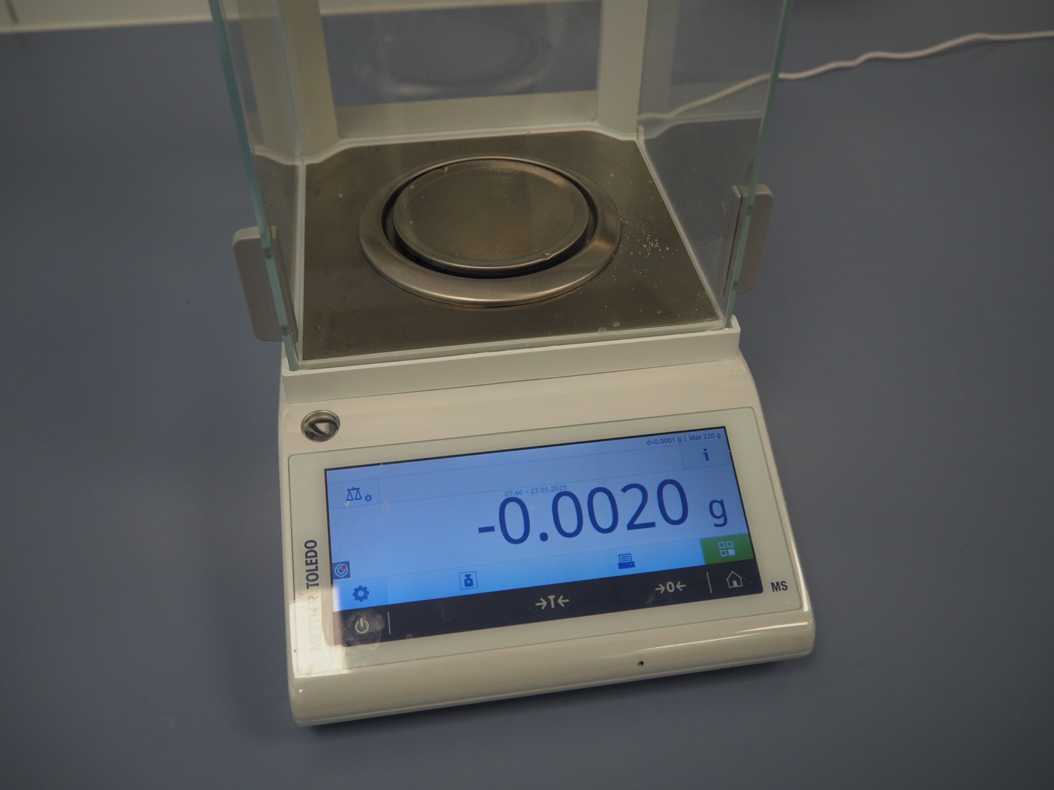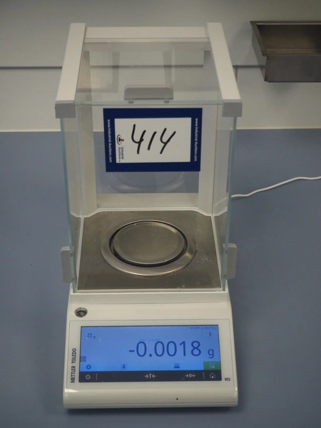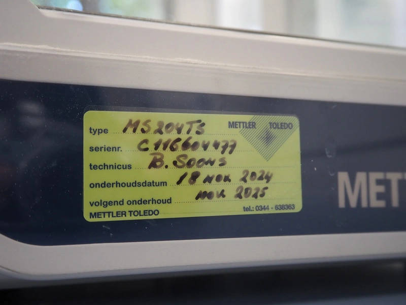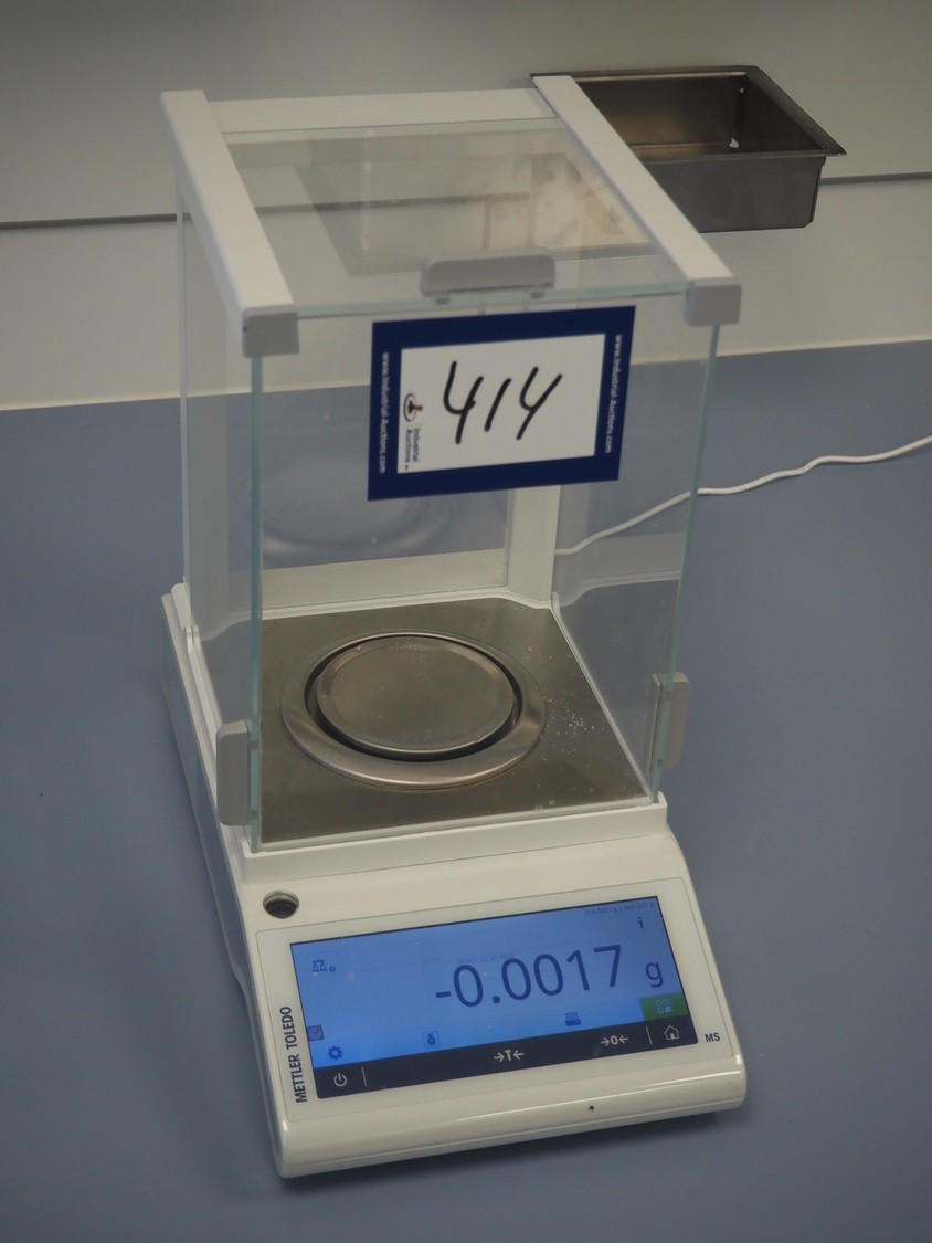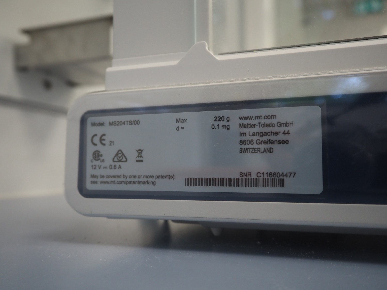 Mettler-Toledo GmbH internal calibration analytical balance, model: MS204TS/00, serial number: C116604477, year of construction: 2021, maximum weight: 220 g, d=0.1 mg, dimensions: 350 mm x 200 mm x 350 mm.