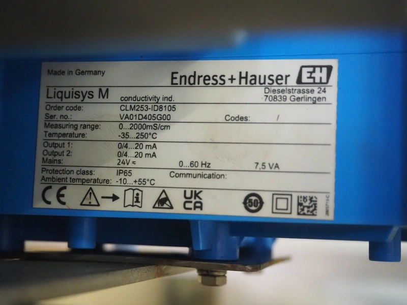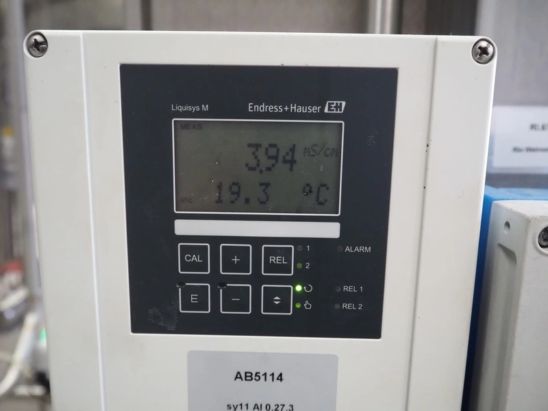Endress+Hauser analogue conductivity sensor with Endress+Hauser conductivity transmitter, model: Liquisys M, dimensions: 110 mm x 170 mm x 250 mm.