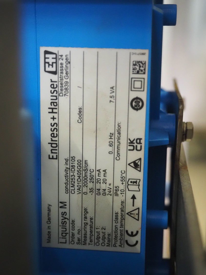 Endress+Hauser analogue conductivity sensor with Endress+Hauser conductivity transmitter, model: Liquisys M, dimensions: 110 mm x 170 mm x 250 mm.