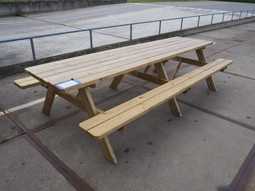 Wooden park table, dimensions: 3000 mm x 1700 mm x 750 mm.