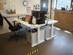Office inventory consisting of 5 desks, dimensions: (4x) 800 mm x 1800 mm x 800 mm, 2300 mmx 1600 mm x 750 mm, 3 steel cabinets, dim…1 bidLot is closed -