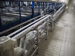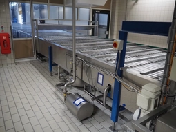 de Klokslag Engineering B.V. cheese turning and repacking installation, plastic belt, belt width: 450 mm, total dimensions: 13000 mm…