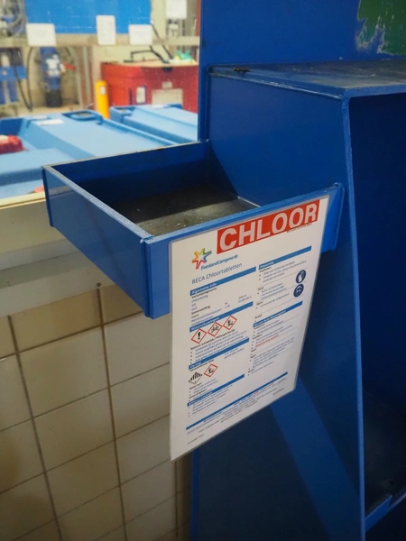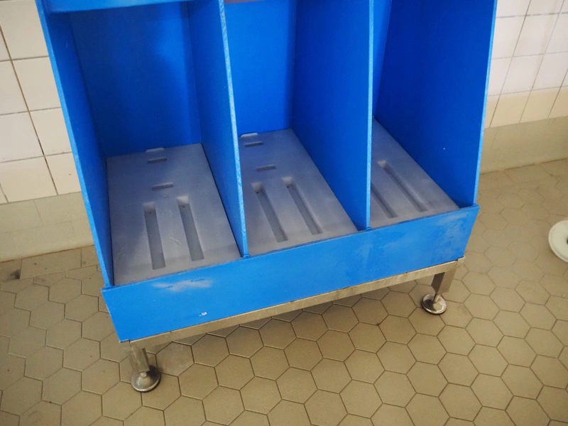 Plastic chemical rack, dimensions: 600 mm x 1200 mm x 1800 mm.