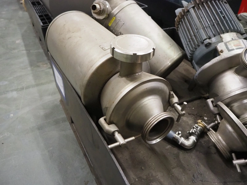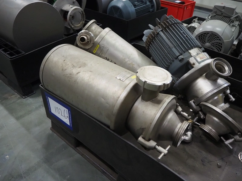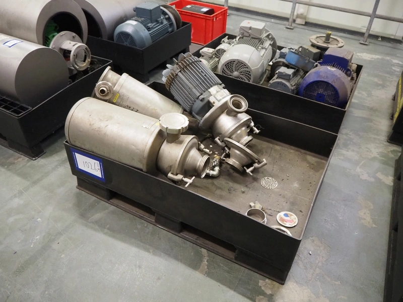 Pallet with 3 Alfa Laval centrifugal pumps, dimensions: 1200 mm x 800 mm x 550 mm. Technical condition unknown.