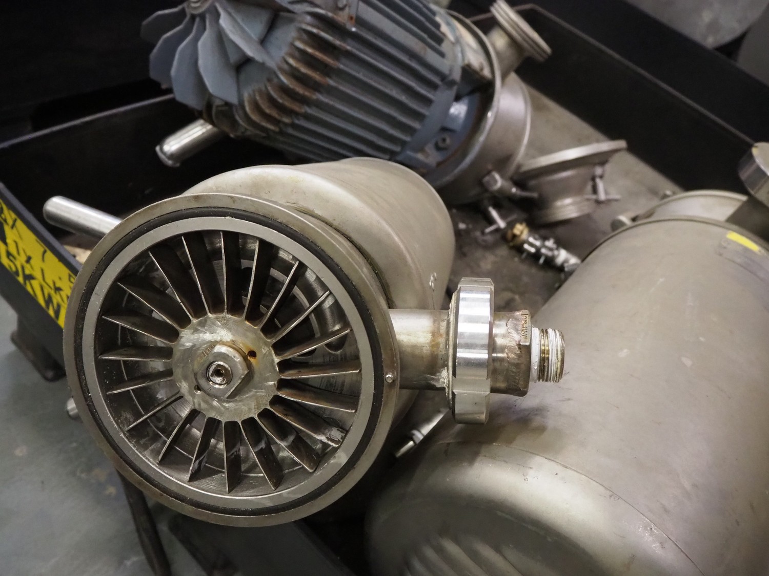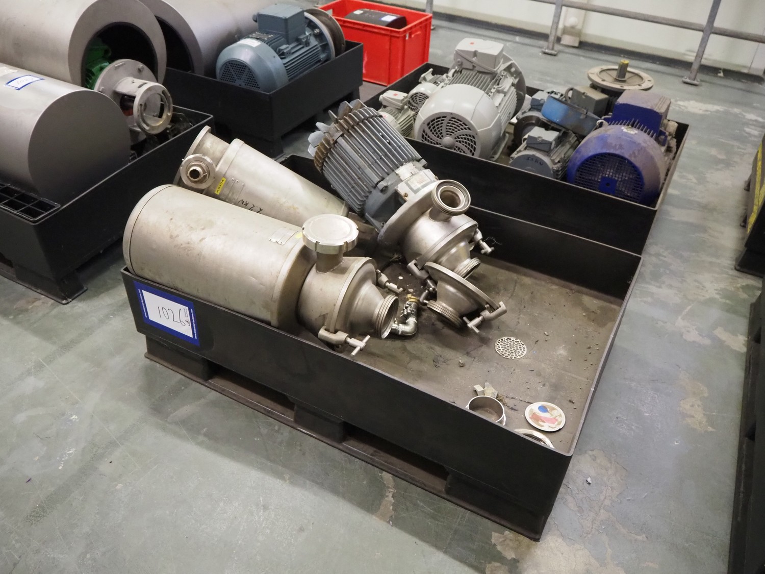 Pallet with 3 Alfa Laval centrifugal pumps, dimensions: 1200 mm x 800 mm x 550 mm. Technical condition unknown.
