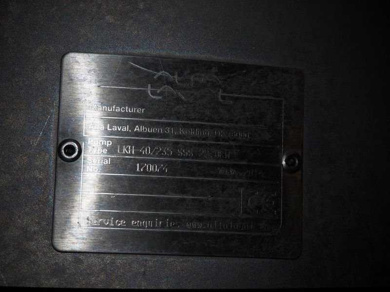 Alfa Laval centrifugal pump, type: LKH 40/235 SSS, serial number: 170074, year of construction: 2014, 22.0 kW, dimensions: 1000 mm x 500 mm x 650 mm.