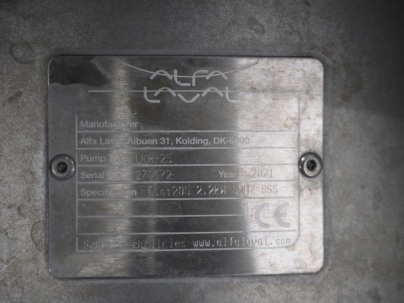 Alfa Laval centrifugal pump, type: LKH-25, serial number: 270672, year of construction: 2021, 2.2 kW, dimensions: 600 mm x 350 mm x 500 mm.