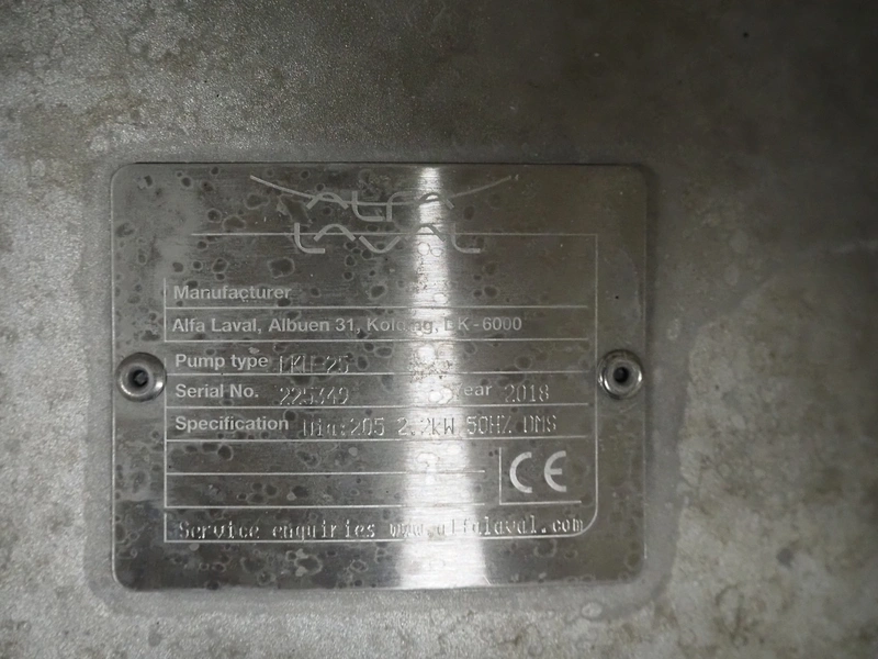 Alfa Laval centrifugal pump, type: LKH-25, serial number: 225349, year of construction: 2018, 2.2 kW, dimensions: 600 mm x 350 mm x 500 mm.