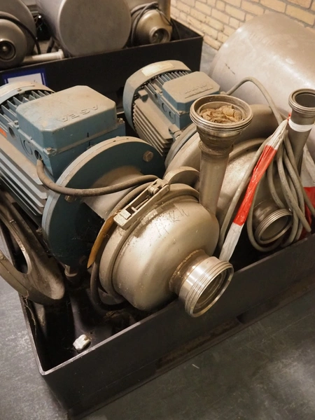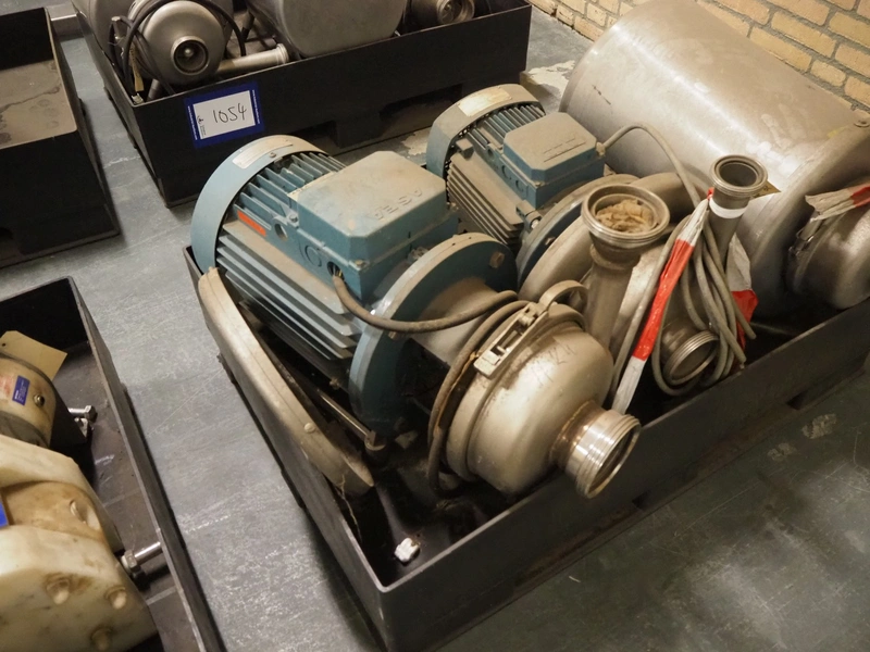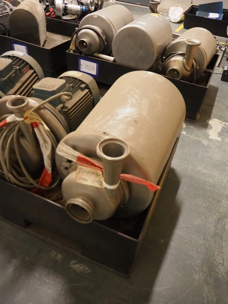 Pallet with 3 APV centrifugal pumps, dimensions: 1200 mm x 800 mm x 600 mm. Technical condition unknown.