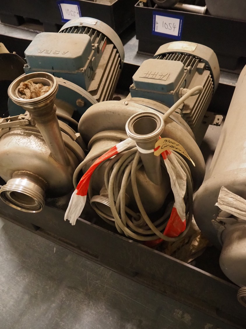 Pallet with 3 APV centrifugal pumps, dimensions: 1200 mm x 800 mm x 600 mm. Technical condition unknown.