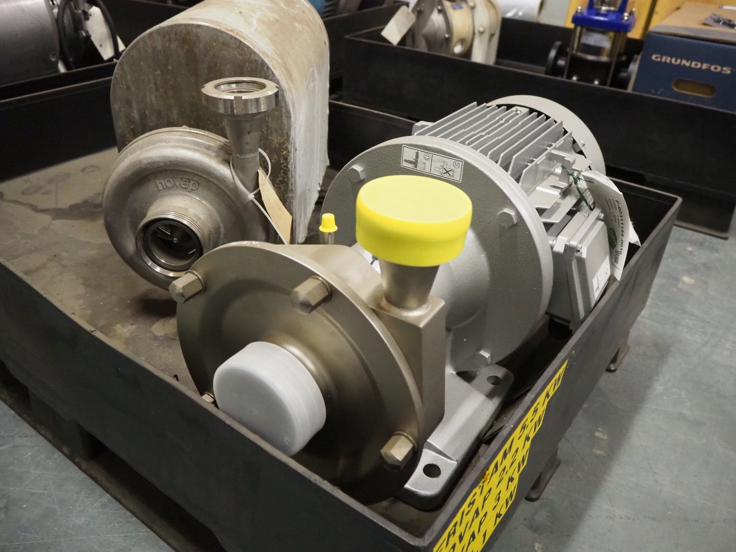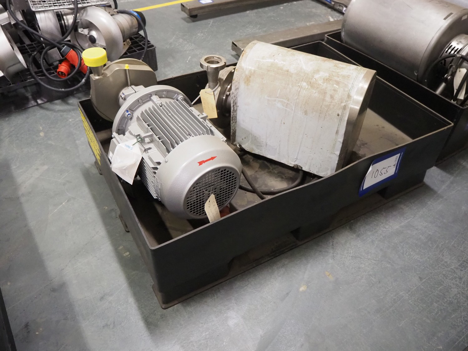 Pallet with 2 Fristam centrifugal pumps, type: FP 742/175 KF, serial number: 0444740145, year of construction: 2022, dimensions: 1200 mm x 800 mm x 600 mm.