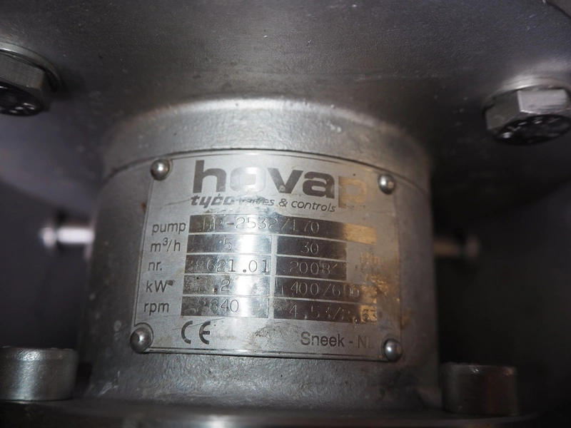 Pallet with Hovap pump and 2 covers, type: HP-25327, number: 38621.01, year of construction: 2008, capacity: 5 m³ per hour, dimensions: 1200 mm x 800 mm x 400 mm.