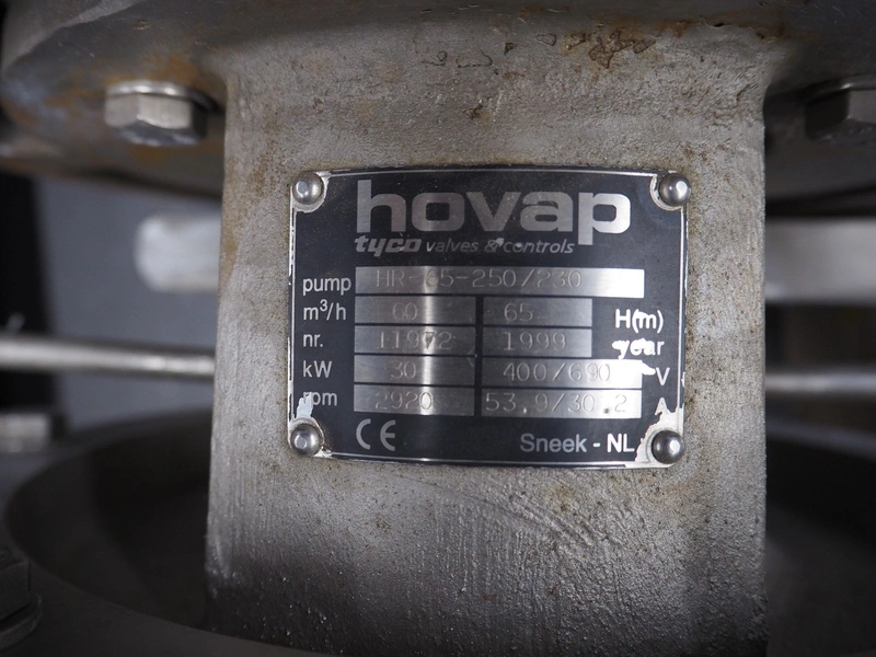 Hovap centrifugal pump, type: HR-65-250/230, number: 11972, year of construction: 1999, capacity: 60 m³ per hour, dimensions: 1000 mm x 400 mm x 800 mm.