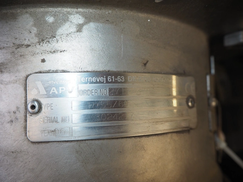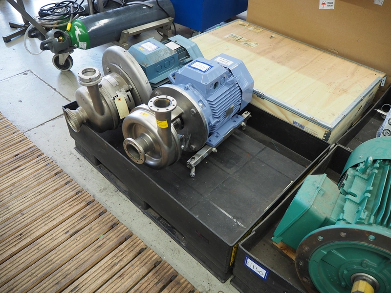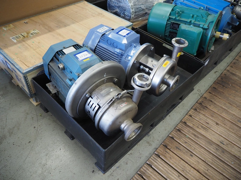 2 APV centrifugal pumps, type: W+55/60, serial number: 3024217, year of construction: 2006, dimensions: 800 mm x 400 mm x 520 mm and 800 mm x 450 mm x 500 mm.