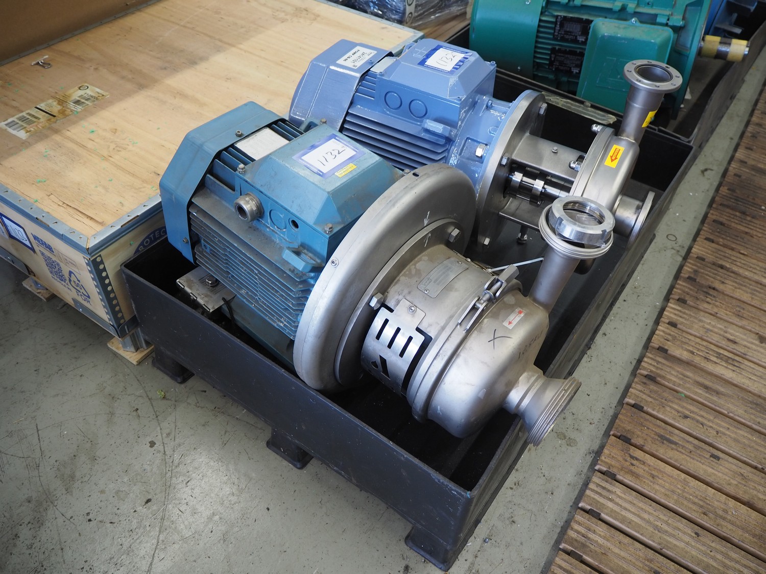 2 APV centrifugal pumps, type: W+55/60, serial number: 3024217, year of construction: 2006, dimensions: 800 mm x 400 mm x 520 mm and 800 mm x 450 mm x 500 mm.
