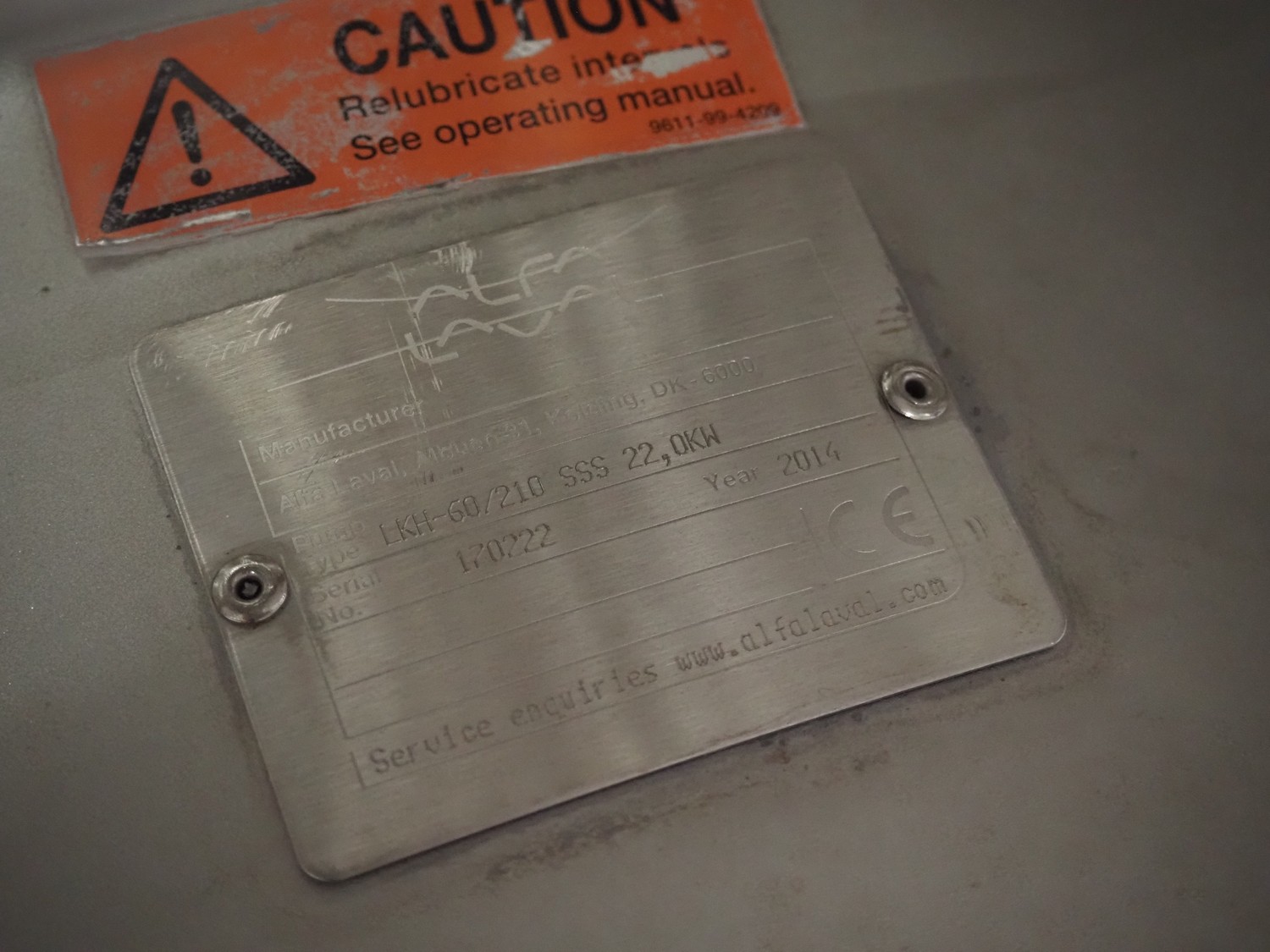 Alfa Laval centrifugal pump, type: LKH-60/210 SSS, serial number: 170222, year of construction: 2014, 22.0 kW, dimensions: 960 mm x 550 mm x 620 mm.