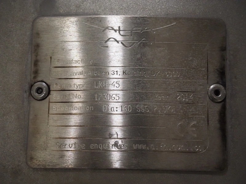 Alfa Laval centrifugal pump, type: LKH-45, serial number: 173065, year of construction: 2014, 50 Hz, 7.5 kW, dimensions: 700 mm x 380 mm x 500 mm.