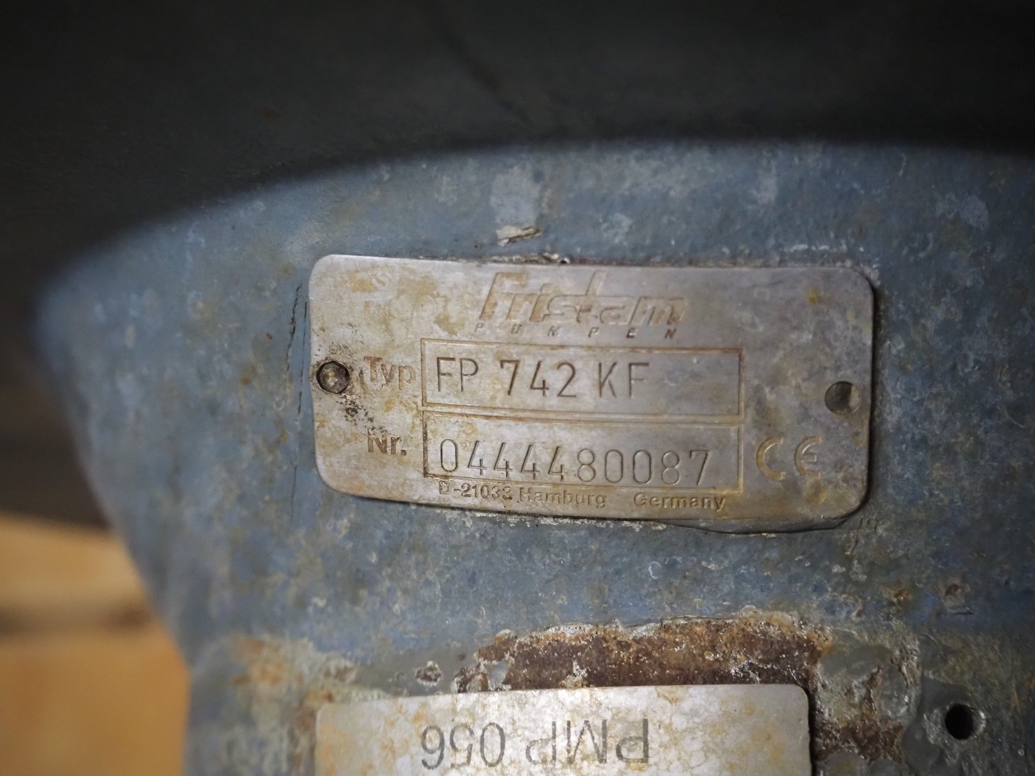 Fristam centrifugal pump, type: FP 742 KF, number: 0444480087, dimensions: 700 mm x 350 mm x 500 mm.
