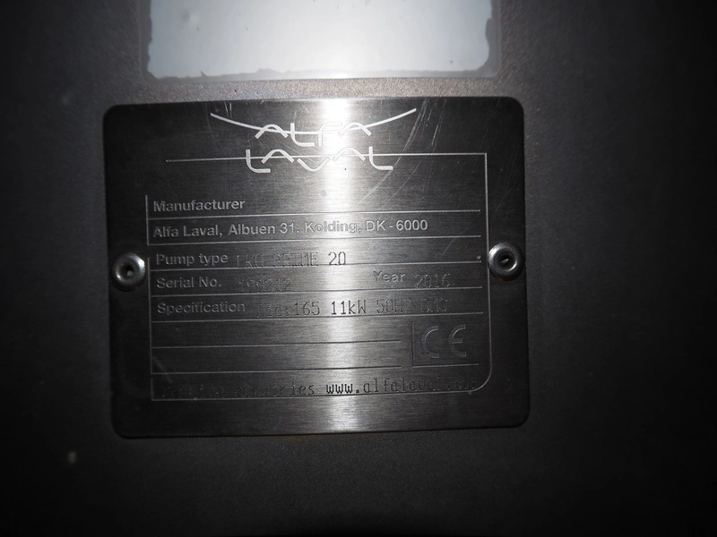 Alfa Laval centrifugal pump, type: LKH PRIME 20, serial number: 199212, year of construction: 2016, 11 kW, dimensions: 1000 mm x 500 mm x 500 mm.