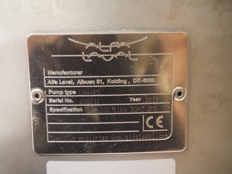 Alfa Laval centrifugal pump, type: LKH-25, serial number: 238231, year of construction: 2019, 50 Hz, 11 kW, dimensions: 850 mm x 500 mm x 600 mm.