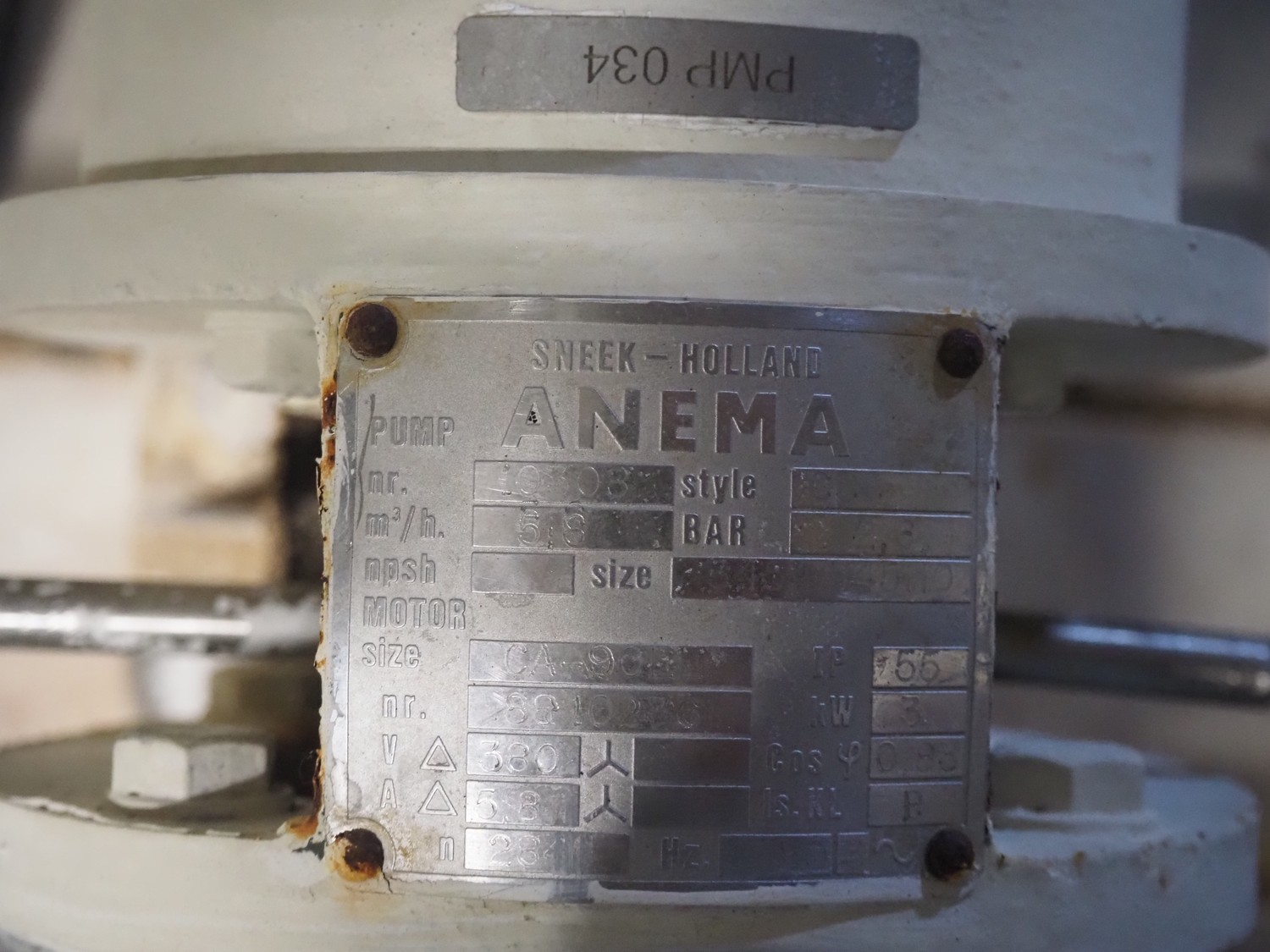 Anema centrifugal pump, dimensions: 600 mm x 250 mm x 500 mm.