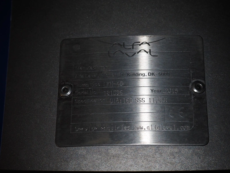 Alfa Laval centrifugal pump, type: LKH-45, serial number: 181596, year of construction: 2015, 11.0 kW, dimensions: 850 mm x 500 mm x 600 mm.