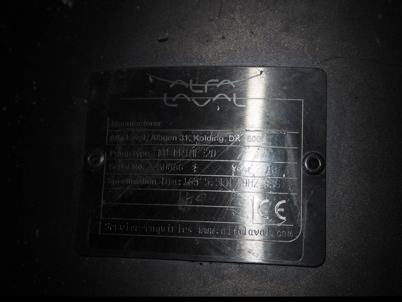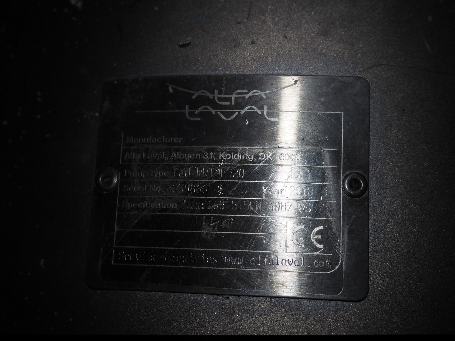 Alfa Laval centrifugal pump, type: LKH-PRIME 20, serial number: 230866, year of construction: 2018, 5.5 kW, dimensions: 750 mm x 380 mm x 400 mm.