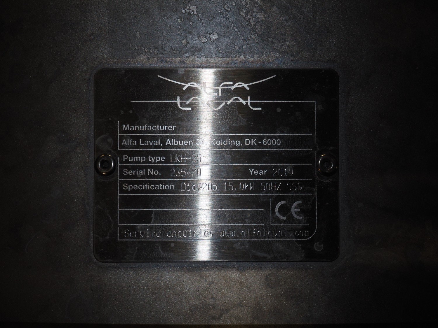 Alfa Laval centrifugal pump, type: LKH-25, serial number: 235470, year of construction: 2019, 50 Hz, 15.0 kW, dimensions: 900 mm x 450 mm x 600 mm.
