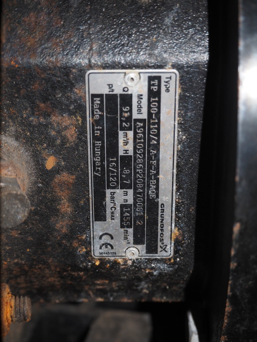 Grundfos circulation pump, type: TP 100-110/4 A-F-A-BAQE, dimensions: 550 mm x 350 mm x 680 mm.