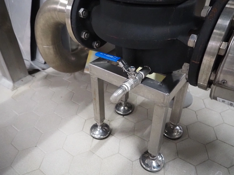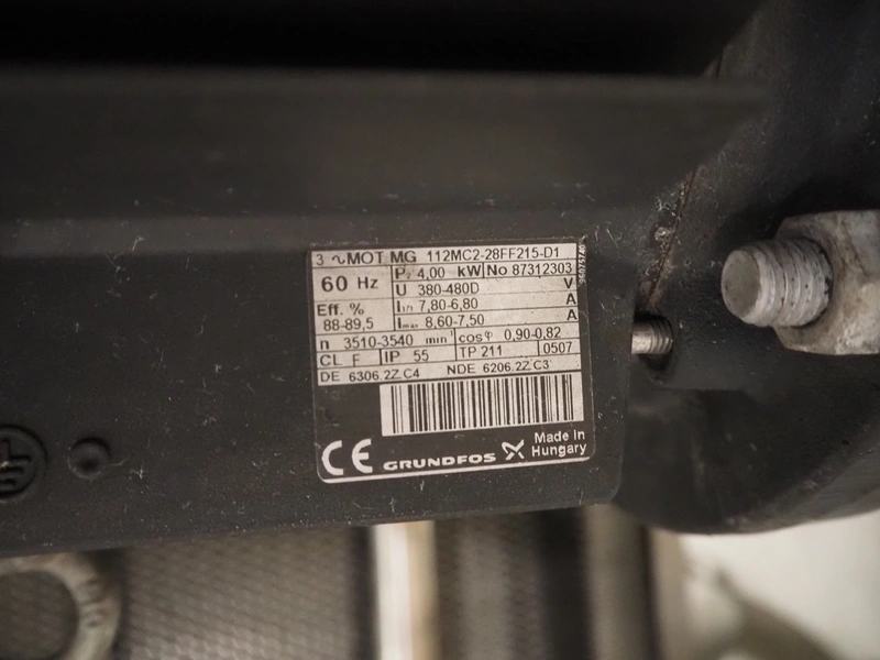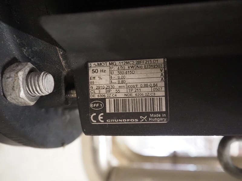 Grundfos circulation pump on s/s frame, dimensions: 350 mm x 250 mm x 700 mm.
