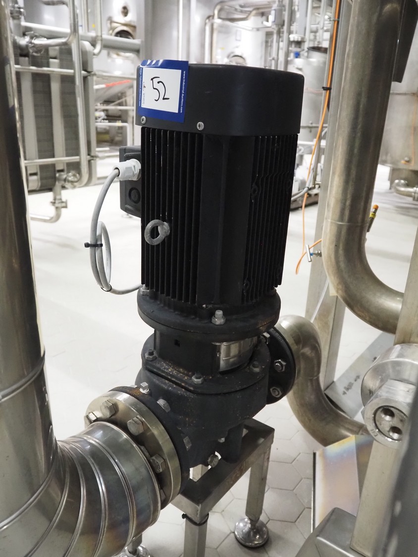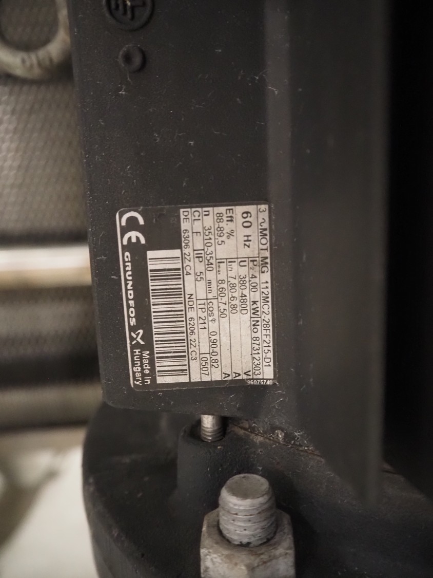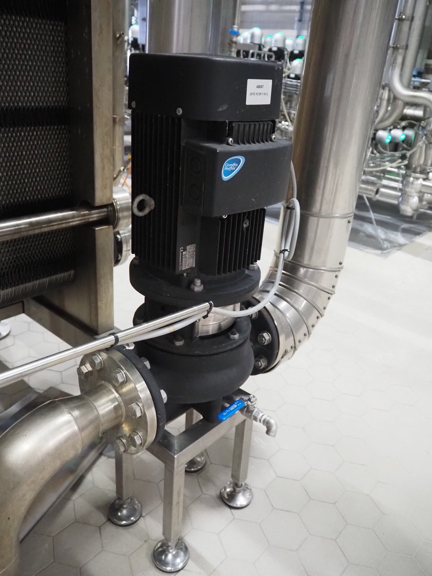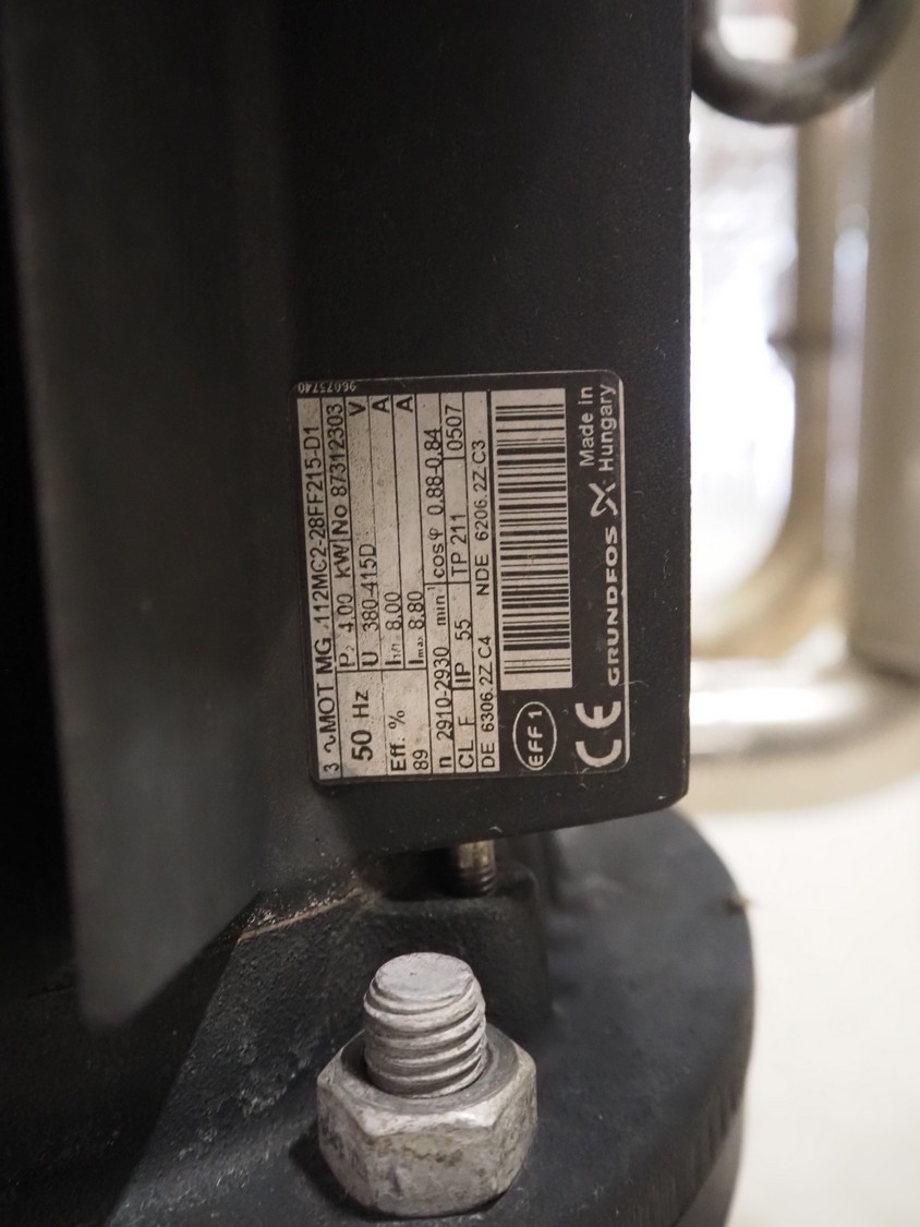 Grundfos circulation pump on s/s frame, dimensions: 350 mm x 250 mm x 700 mm.