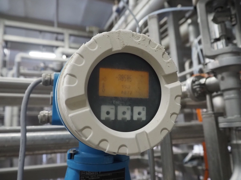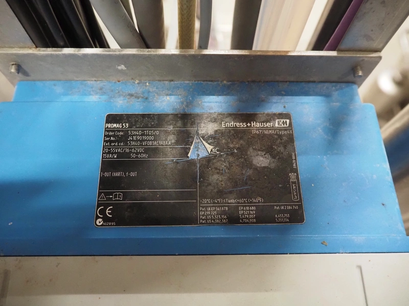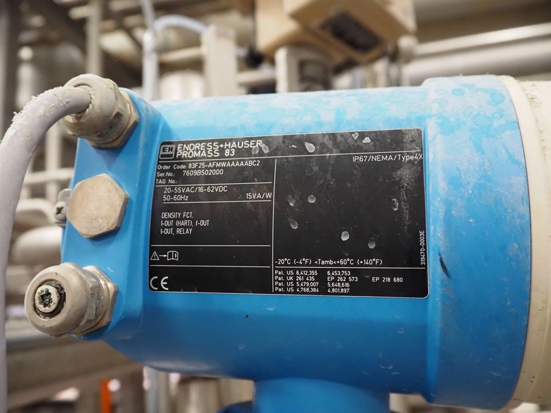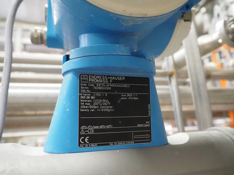 Endress+Hauser mass flowmeter with transmitter, type: PROMASS F, DN25, dimensions: 350 mm x 220 mm x 320 mm, 130 mm x 220 mm x 250 mm.