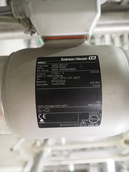 Endress+Hauser flowmeter with transmitter, type: PROMAG H, serial number: K707E119000, DN50, dimensions: 200 mm x 120 mm x 170 mm, 130 mm x 220 mm x 250 mm.