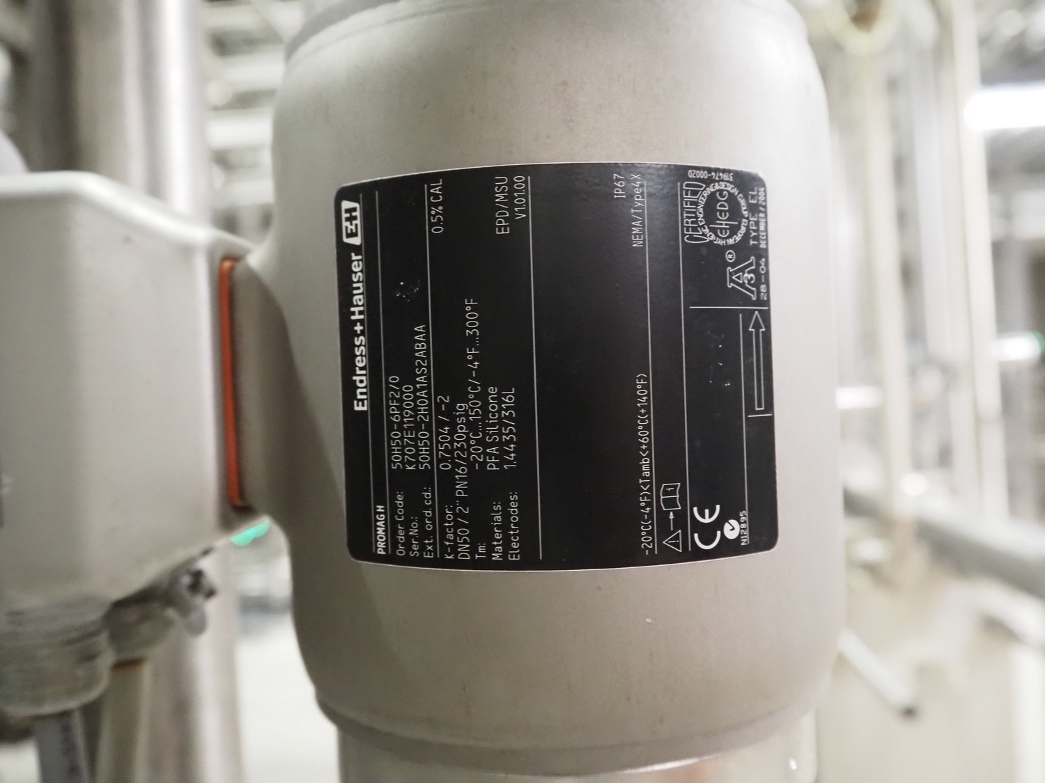 Endress+Hauser flowmeter with transmitter, type: PROMAG H, serial number: K707E119000, DN50, dimensions: 200 mm x 120 mm x 170 mm, 130 mm x 220 mm x 250 mm.