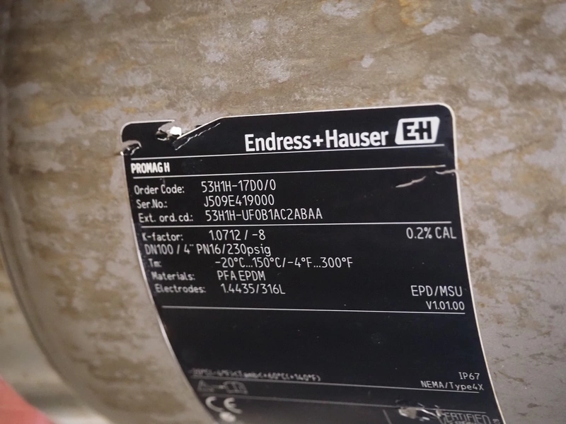 Endress+Hauser flowmeter with transmitter, type: Promag H, serial number: J509E419000, DN100, dimensions: 300 mm x 170 mm x 170 mm, 90 mm x 170 mm x 180 mm.