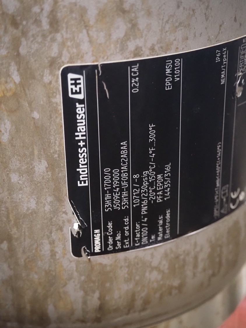 Endress+Hauser flowmeter with transmitter, type: Promag H, serial number: J509E419000, DN100, dimensions: 300 mm x 170 mm x 170 mm, 90 mm x 170 mm x 180 mm.