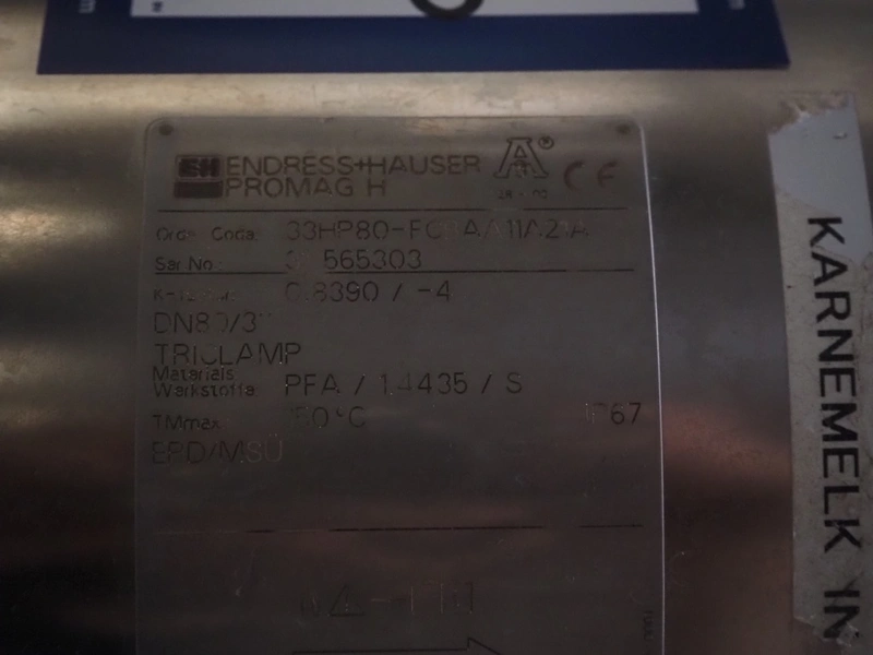 Endress+Hauser flowmeter, type: PROMAG H, DN80 dimensions: 400 mm x 200 mm x 300 mm.