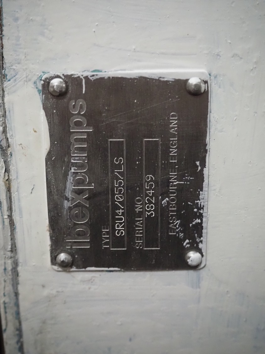 Ibex Pumos rotary lobe pump, type: SRU4/055/LS, serial number: 382459, dimensions: 1200 mm x 400 mm x 550 mm.