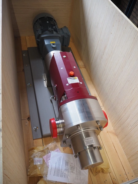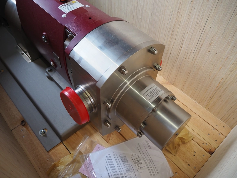 Wooden crate with Gardner Denver / SSP Pumps rotary lobe pump, type: S6-0353-H07, serial number: E226274A, year of construction: 2020, dimensions: 2200 mm x 850 mm x 1000 mm.