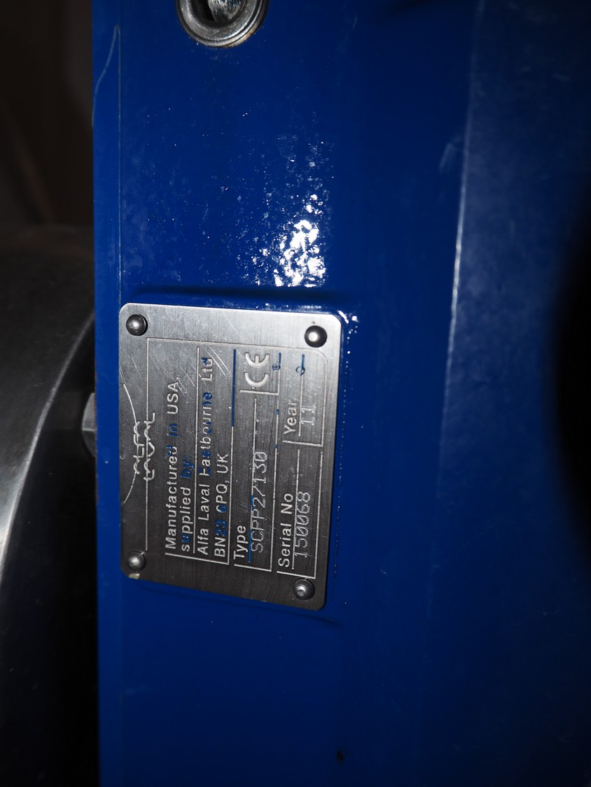 Alfa Laval circumferential piston pump, type: SCPP2/130, serial number: 150068, year of construction: 2011, dimensions: 1100 mm x 280 mm x 480 mm.