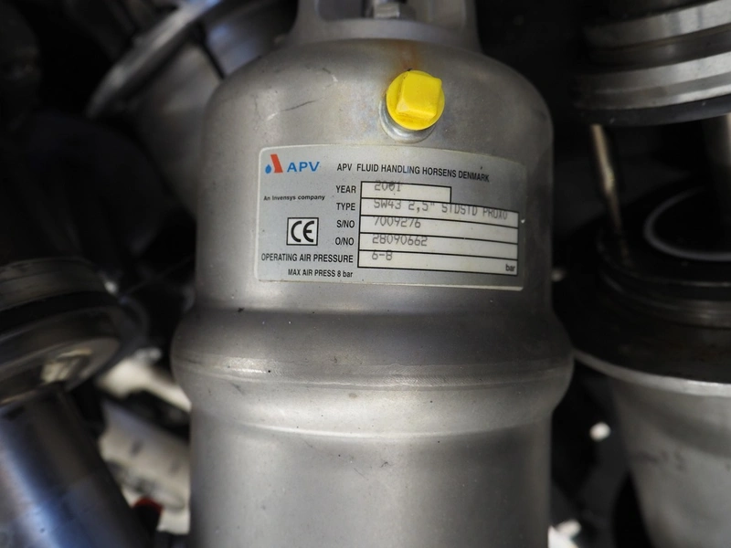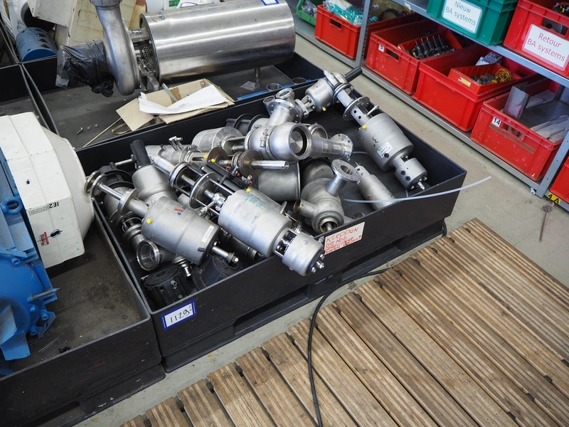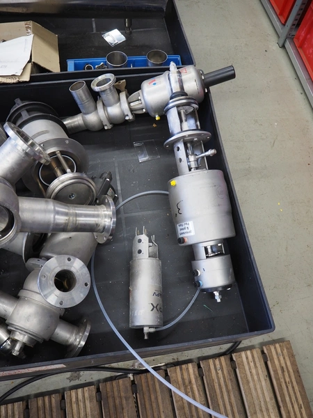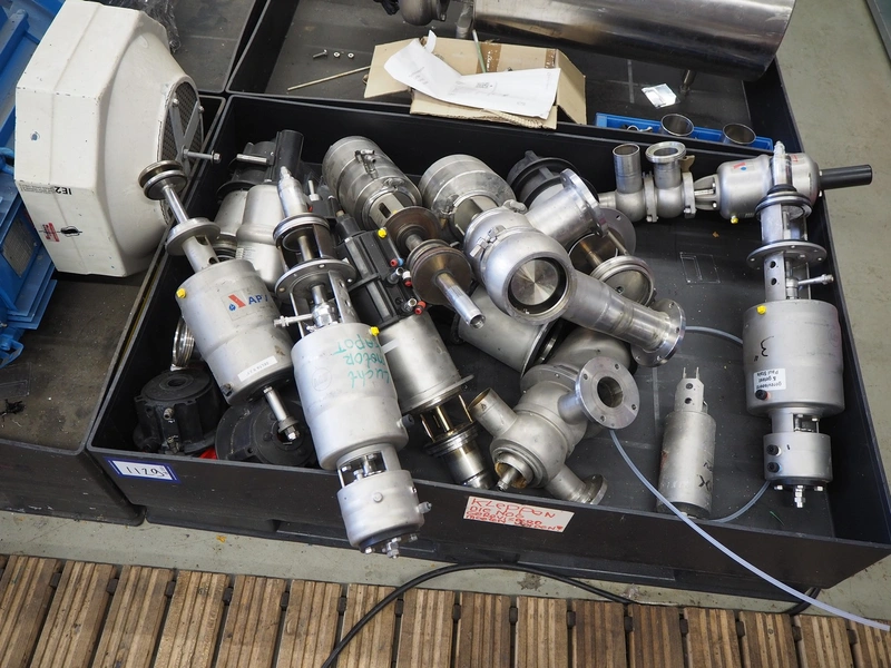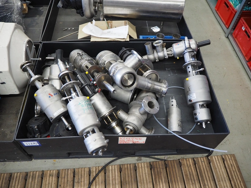 Pallet with large amount of APV valves, dimensions: 1200 mm x 800 mm x 350 mm. Technical condition unknown.