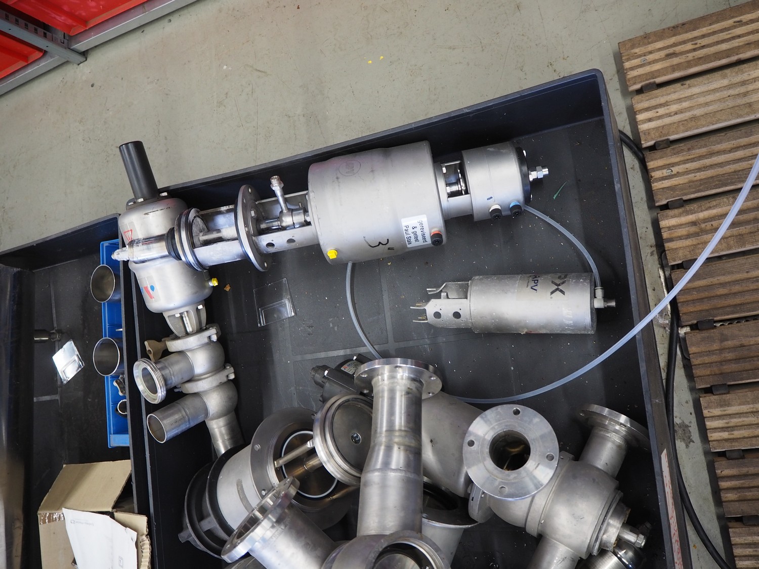 Pallet with large amount of APV valves, dimensions: 1200 mm x 800 mm x 350 mm. Technical condition unknown.